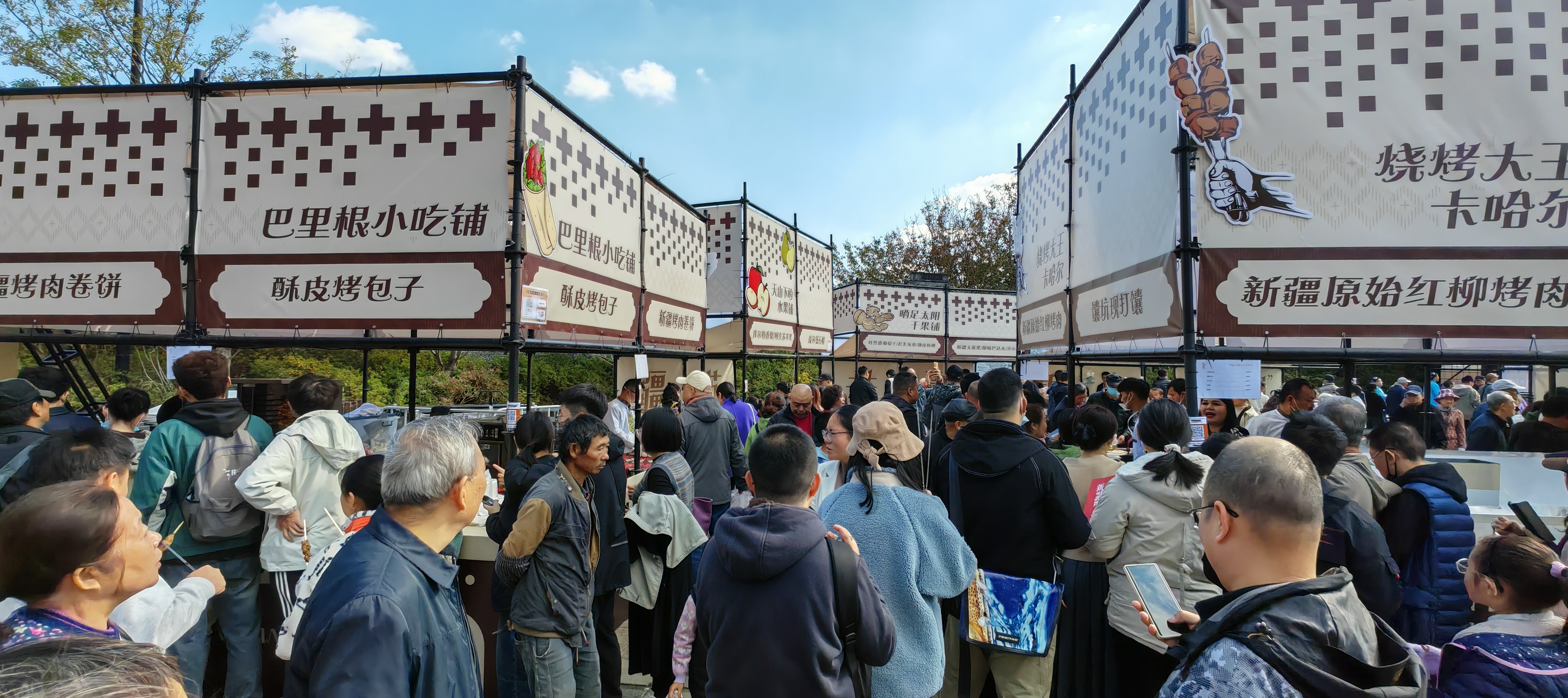 11月23日、24日两天,该活动现场热闹非凡。《吐鲁番盛典》带着现场观众进入一场歌舞盛宴;“巴扎”上,新疆特产、文创产品令人眼花缭乱,烤羊、抓饭、馕、奶茶等地道新疆美食更是诱人,有的展位一天卖出1000多串烤肉。摆晓龙表示,今后将持续借助资源优势和平台优势,让更多新疆文旅产品来到无锡市民、游客身边。