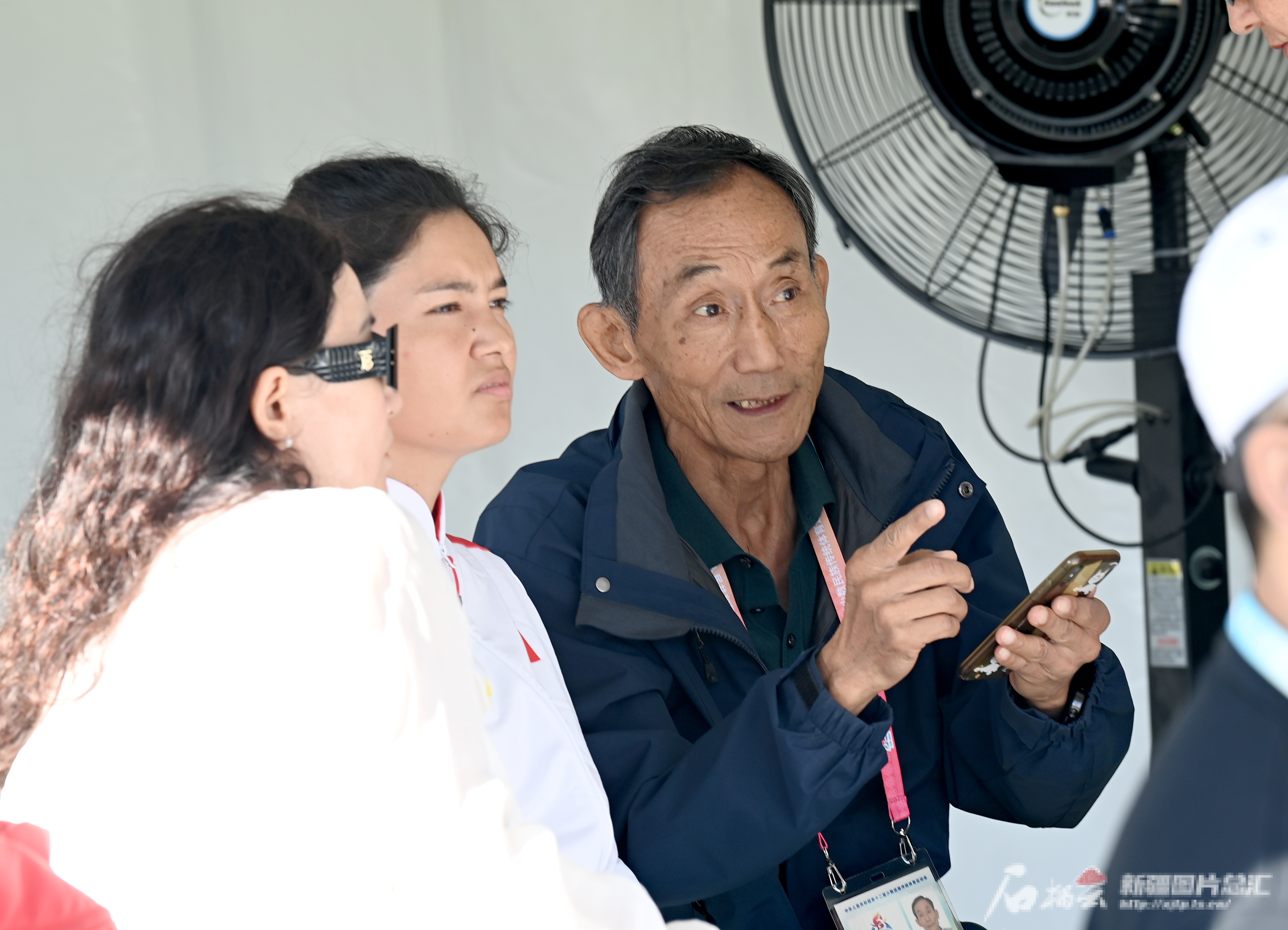 11月27日,队员为古丽阿亚提·麦麦提加油鼓劲。石榴云/新疆日报记者 韩亮摄