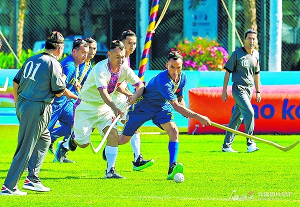 11月24日上午,男子珍珠球第二轮小组赛中山东队与新疆队比拼。比赛结束后,两队在场外同喊口号、互赠纪念品;26日,民族大联欢文化活动上,全国各地代表团相聚“天涯海角”景区,各族运动员在海边延展出一条绵长的“民族风景线”;27日,新疆代表团在驻地酒店精心筹备了联欢会,新疆、湖南、云南、黑龙江等地代表团欢聚一堂,共叙友情。
