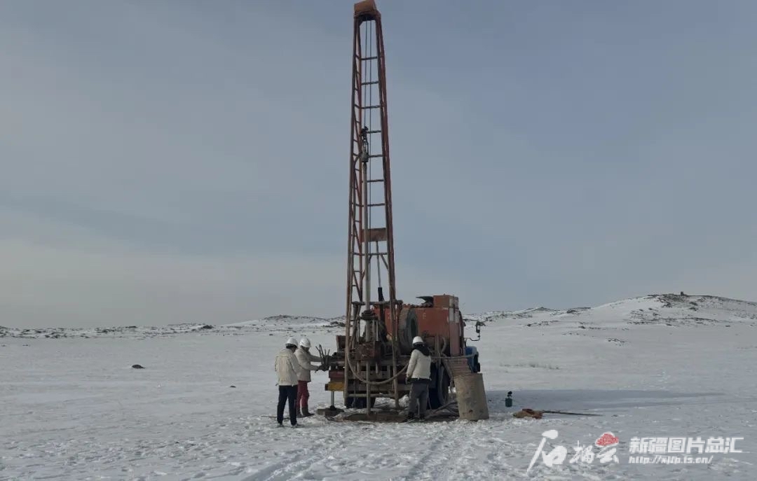 2月6日,在申能新疆塔城托里县风电项目现场,勘探人员正在选址勘探。托里县融媒体中心供图