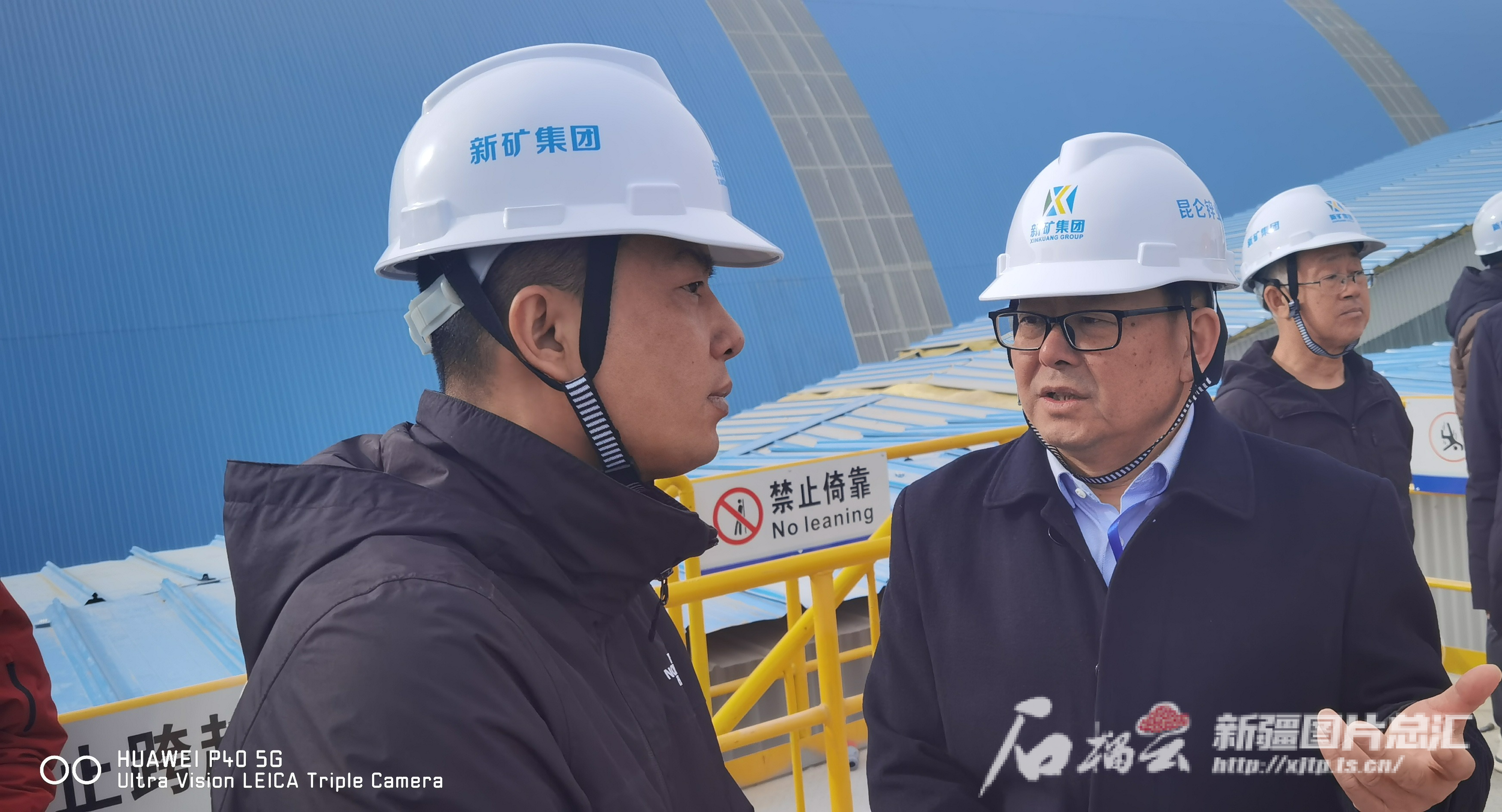 2月27日,马华东委员(中)在新矿集团火烧云铅锌矿60万吨/年铅锌冶炼工程现场进行调研。图片由本人提供