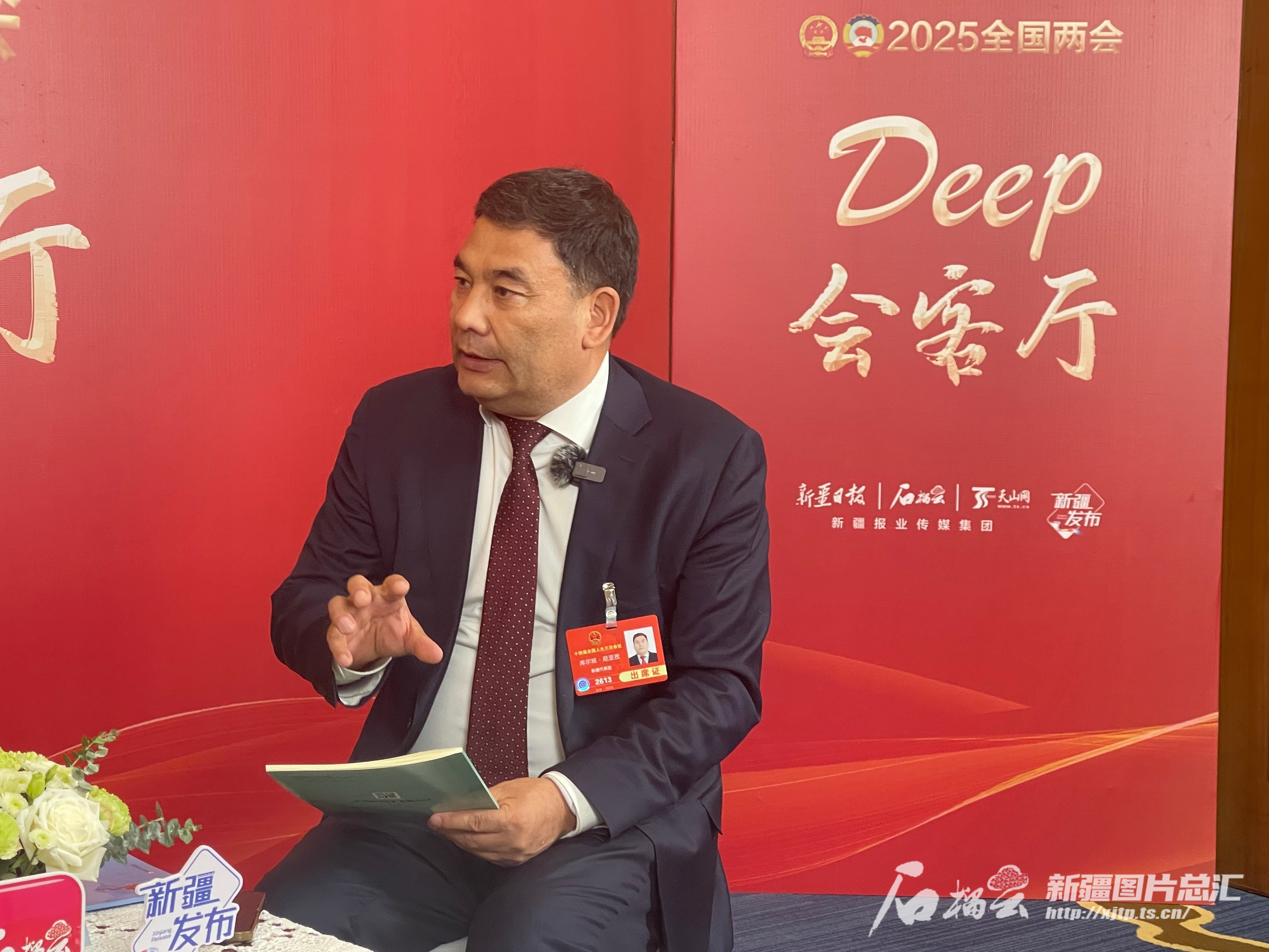 库尔班·尼亚孜代表在新疆日报社(集团)2025年全国两会前方新闻中心“Deep会客厅”中接受采访。天山网-新疆日报记者 刘翔摄
