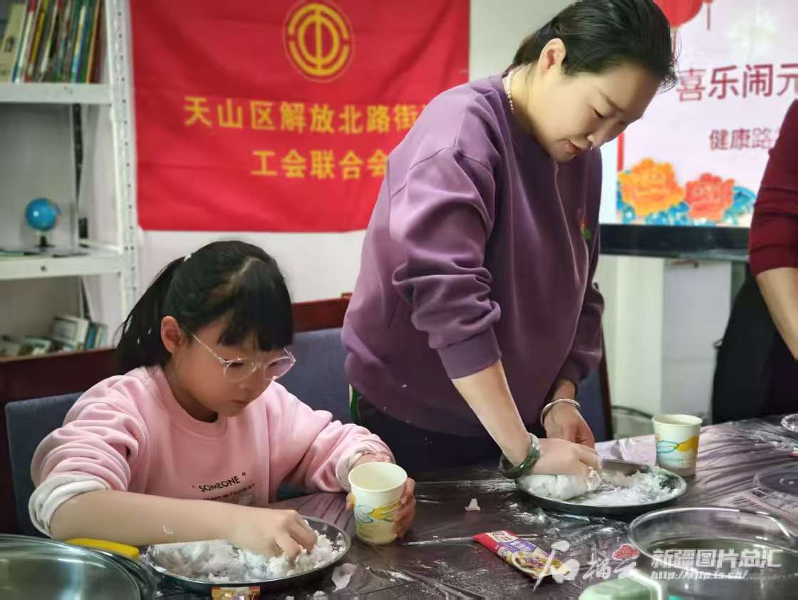 2月11日,社区开展的“喜乐闹元宵·美德润家风”活动,马露露(右一)在和面。受访人供图