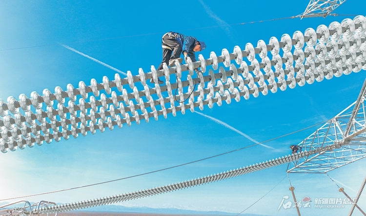 3月9日,国网新疆电力有限公司建设分公司建管的哈密—重庆±800千伏特高压直流输电线路工程(新疆段),工作人员正在走线消缺。随着该工程顺利推进,项目建设已进入收尾阶段,预计上半年建成投用。 □马元摄