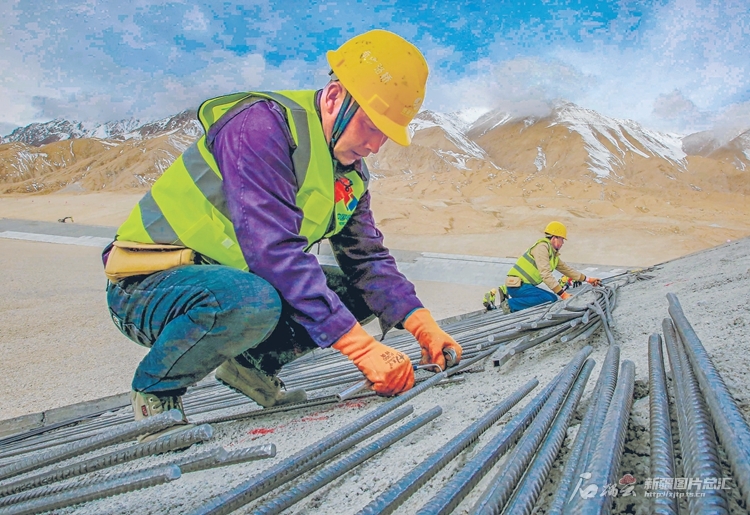 3月26日,工人在阿然保泰水库工程项目建设现场绑扎钢筋。该项目位于塔什库尔干塔吉克自治县境内,是一座用于灌溉和城乡供水的注入式小型水库,总库容403万立方米。□石榴云/新疆日报记者 蔡增乐摄