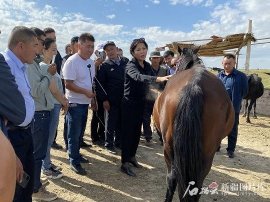 格明古丽(中)为基层技术人员做地方马生产性能测定培训。图/格明古丽课题组提供