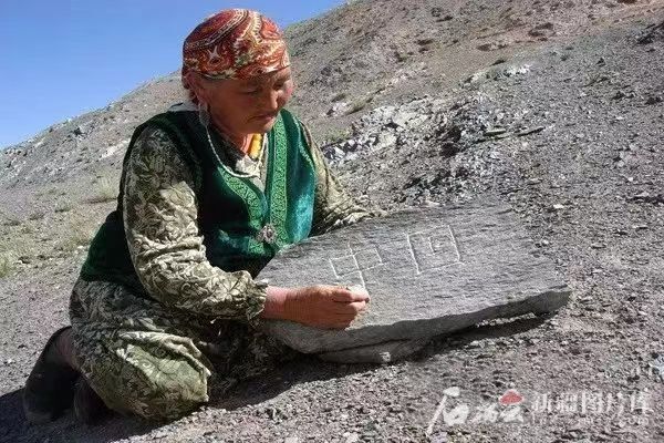 从此,在石头上刻下“中国”,成了她巡边时必做的功课。大的石头就直接将“中国”二字刻在上面,小的石头怕被风吹走,刻好了再用其他石头固定。日复一日,年复一年,布茹玛汗就地取材刻出了10万多块“中国石”,这些石头绵延在冬古拉玛山、阿拉脱力山、尾巴拉山等沿线的边境线上。