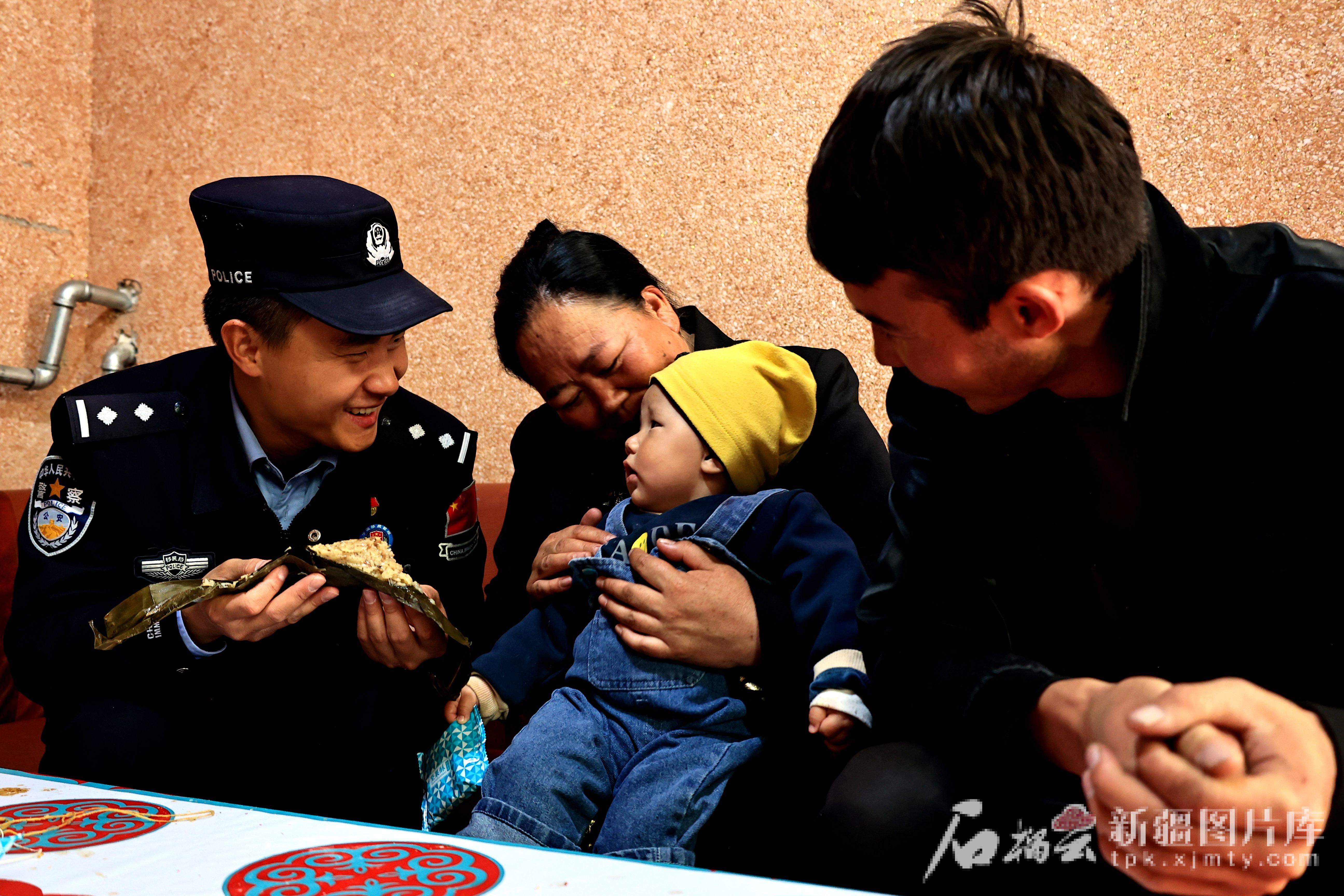 5月28日,新疆出入境边防检查总站和田边境管理支队也开展“端午送温情”行动,民警走进群众家中,共度端午节。王文寅 摄