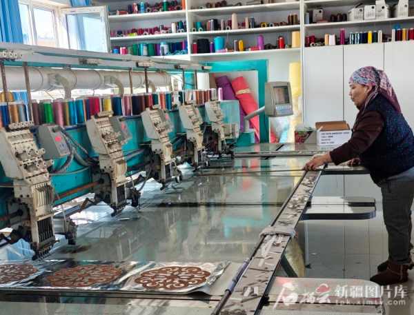 当日,在喀拉奥依村的哈巴河县助力服装刺绣专业合作社内,村民库丽曼·巴迪什正专注制作刺绣产品。“现在在家门口做刺绣,每月能挣3500元。”她脸上洋溢着笑容。这一切得益于村里创新推行的“合作社+企业+农户”模式,企业派驻设计师驻村指导,合作社统一收单分配,带动村里30余名妇女在家门口就业。