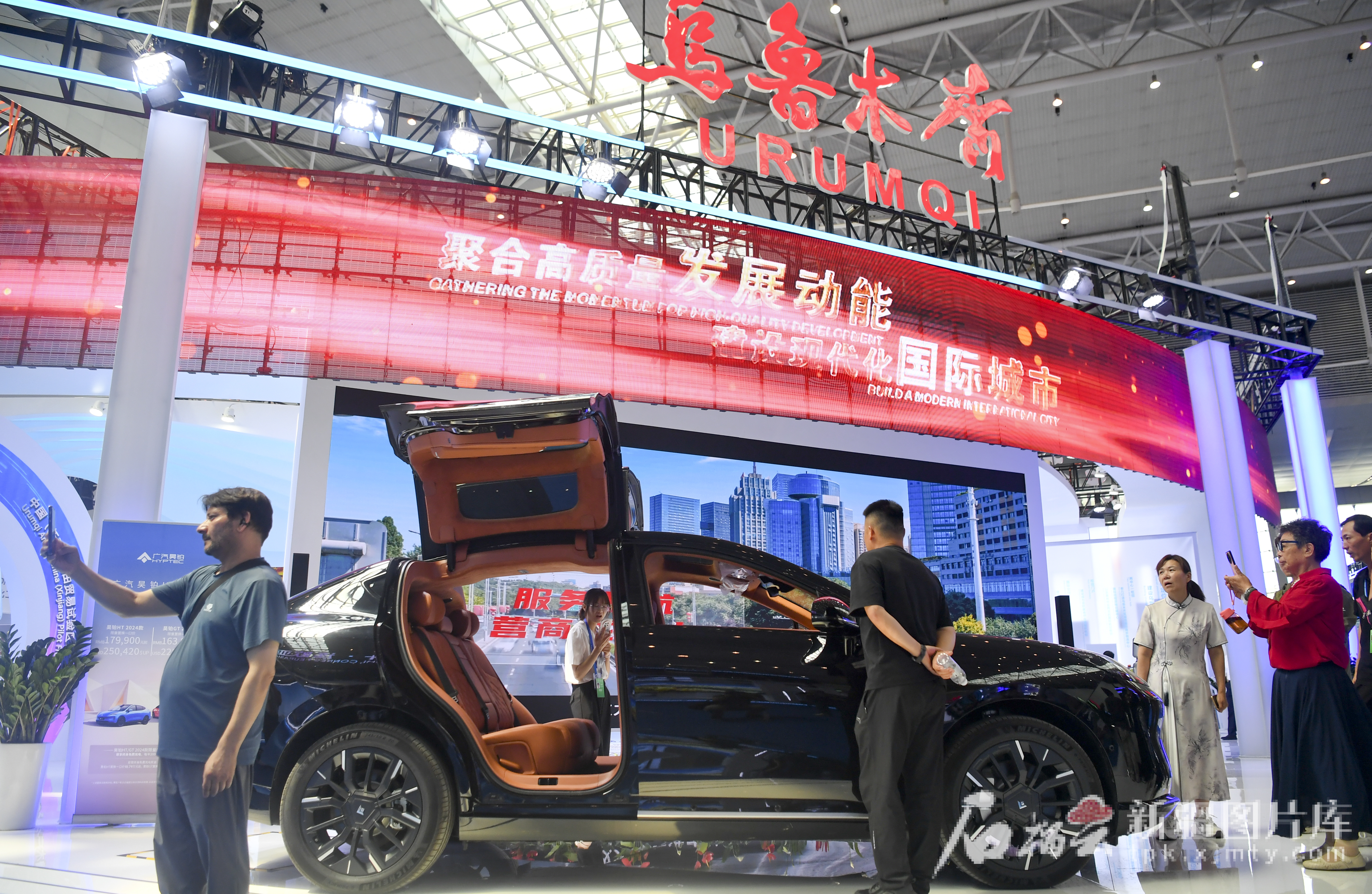 参观者在乌鲁木齐展位前参观广汽汽车。