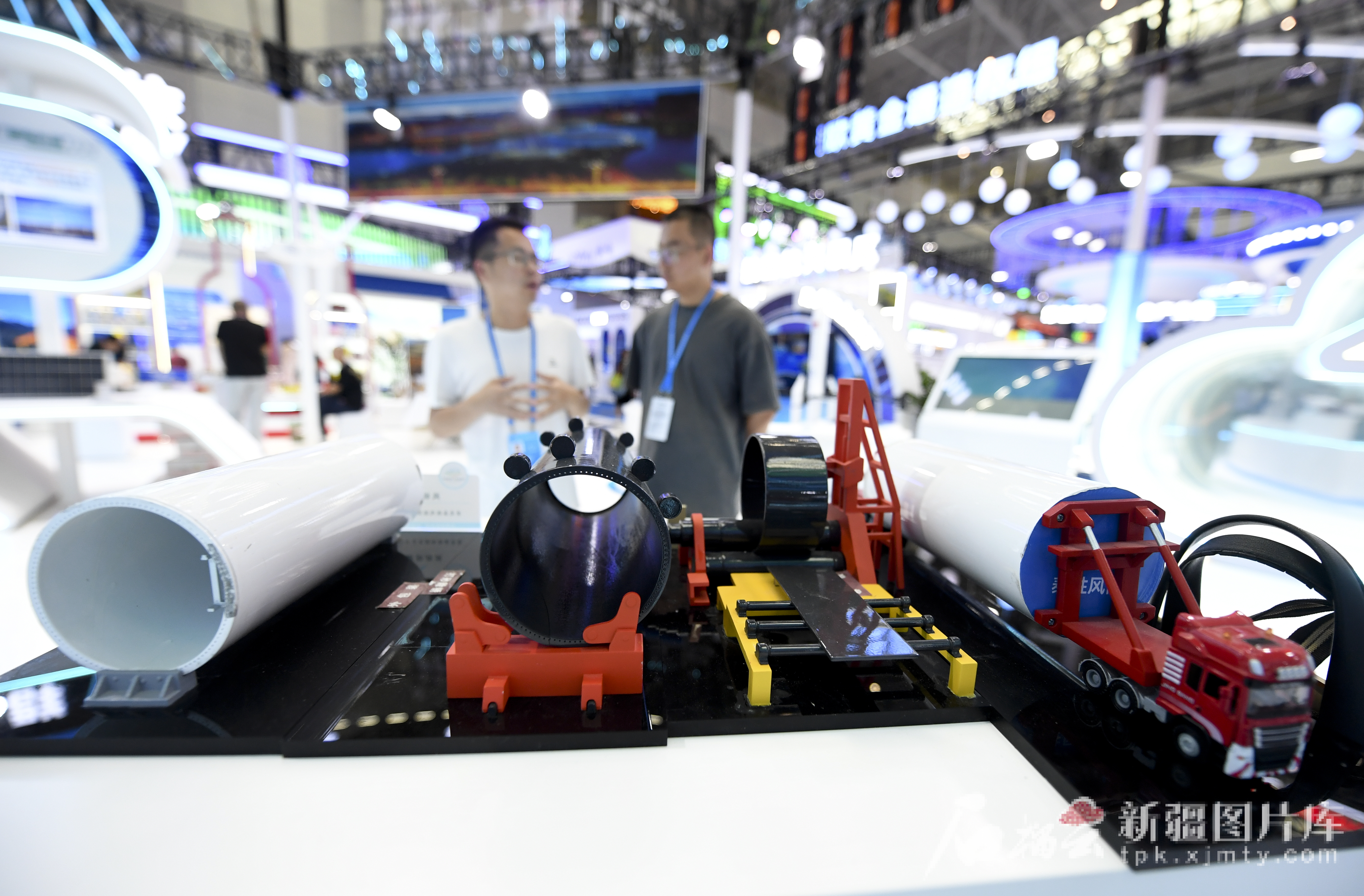 巴音郭楞蒙古自治州展位上展出的风筒模型。