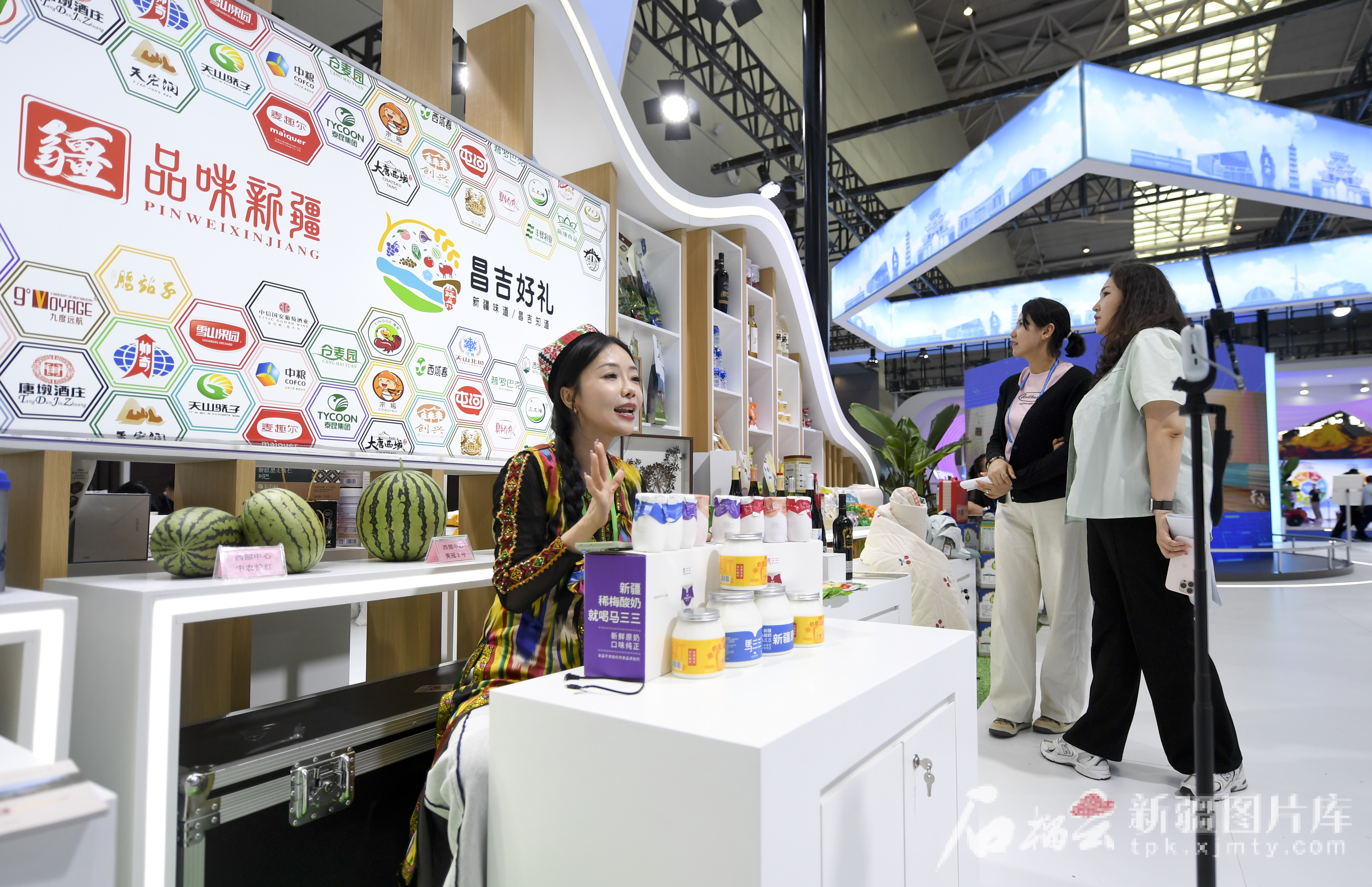 昌吉回族自治州展位,工作人员在推介乳制品。