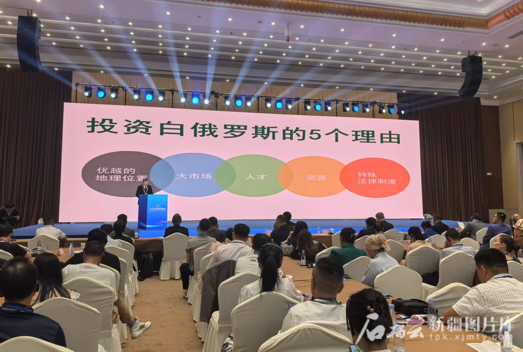 6月27日,2025(中国)亚欧商品贸易博览会境内外企业经贸合作交流会现场,白俄罗斯驻华使馆高级参赞德米特里·贝拉祖斯基进行推介。天山网-新疆日报记者 谢慧变摄