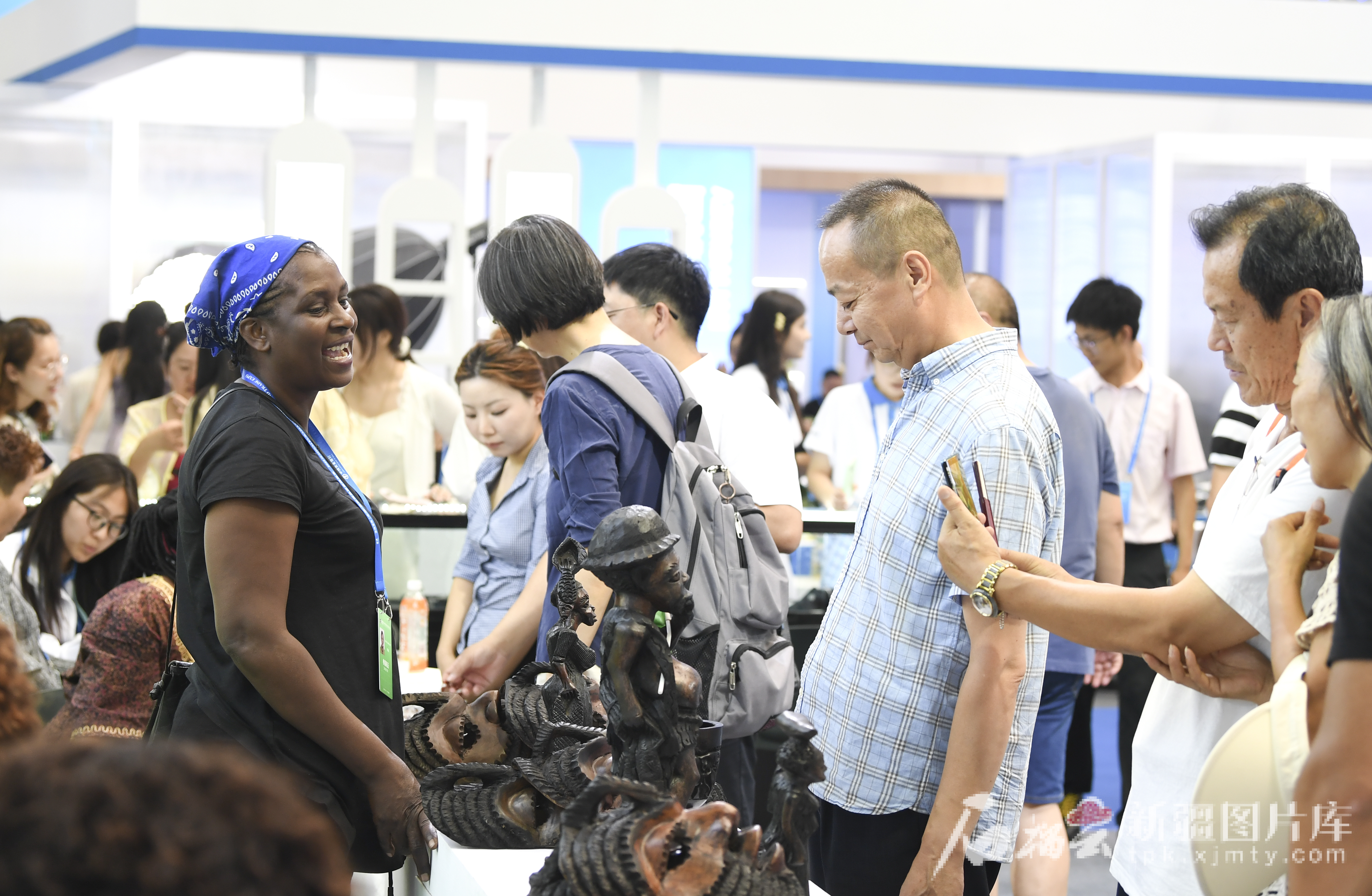 6月28日,参观者在尼泊尔商品馆选购香料制品。