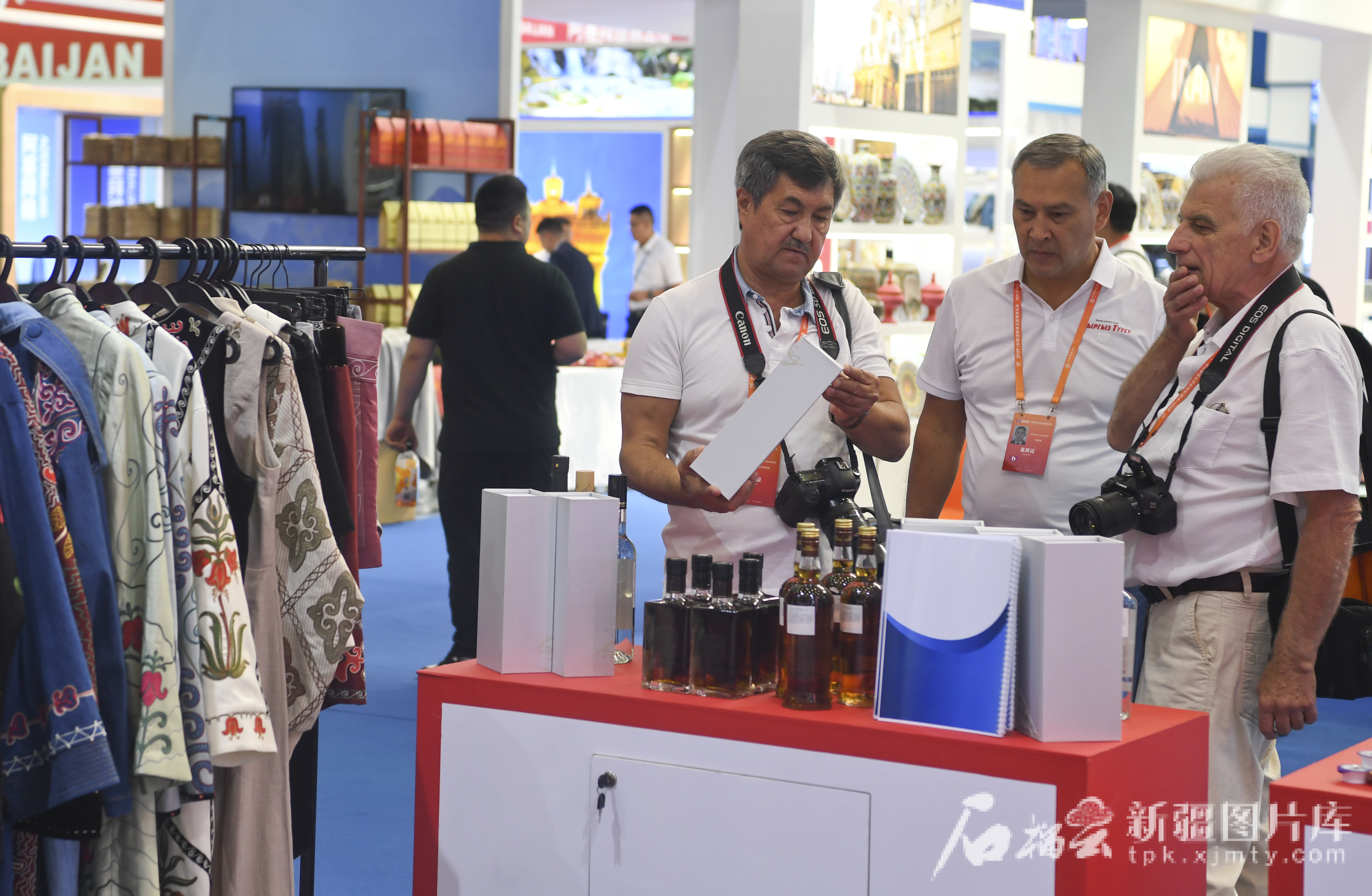 6月28日,客商在吉尔吉斯斯坦商品馆参观。