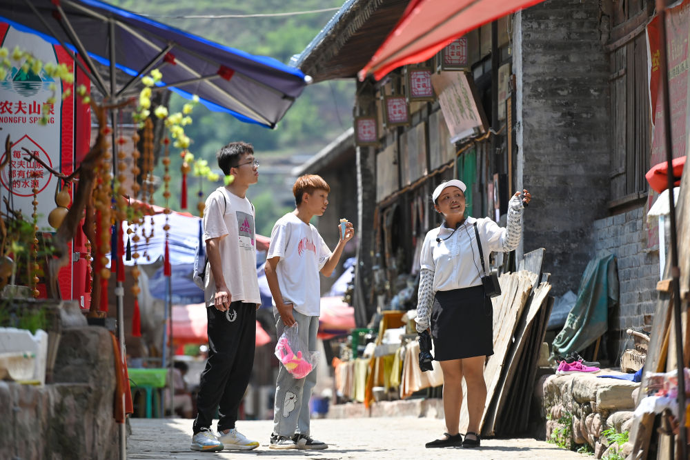 记者见到讲解员康彦红时,她已经接待了五批游客。“蔡家崖的历史太丰富了,如果细讲,三个小时也不够。暑假是旅游旺季,一天下来,讲解员至少要走3万多步,忙得连口水都顾不上喝。”康彦红说,这里年均接待游客超30万人次。