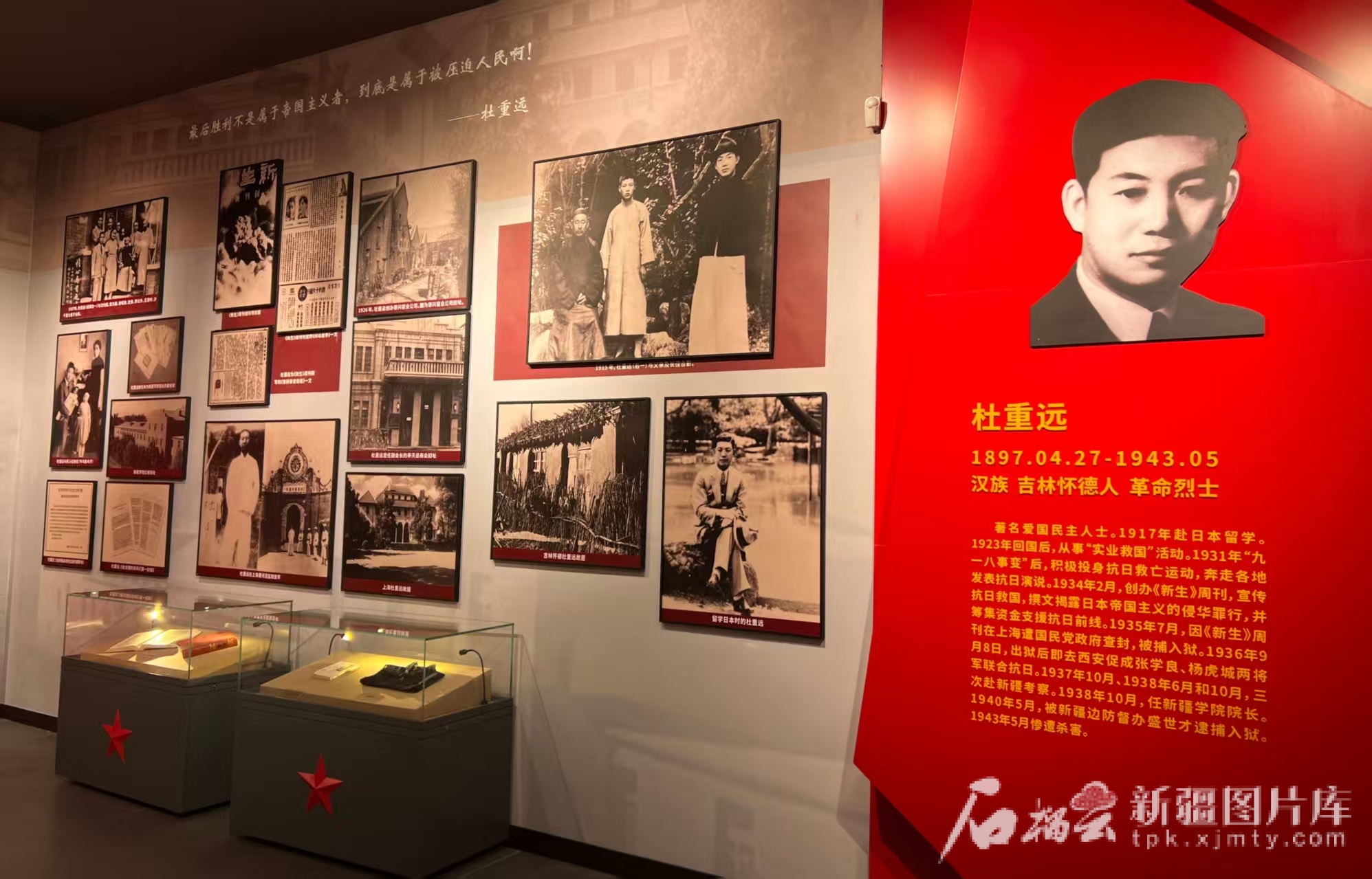 乌鲁木齐烈士事迹陈列馆展示的杜重远烈士的生平事迹。资料图