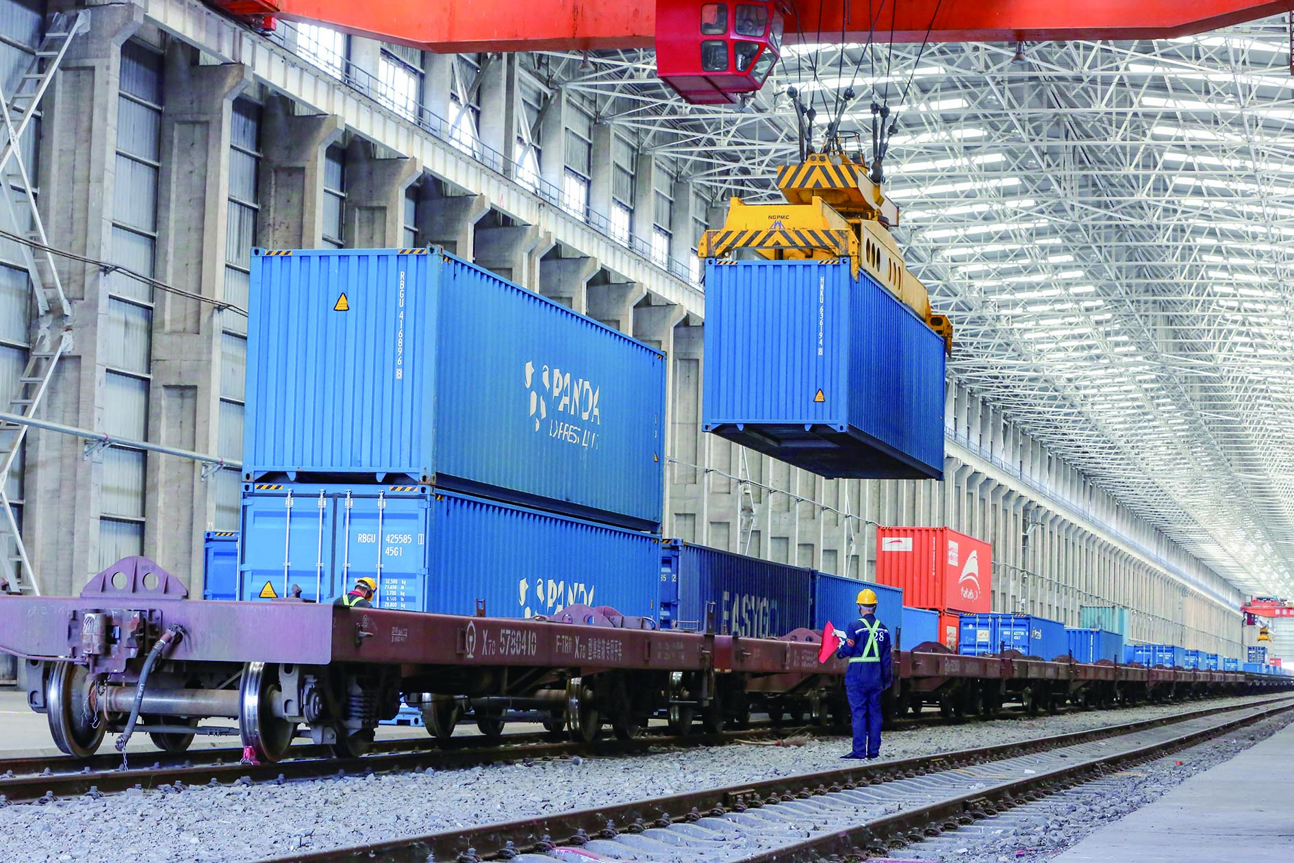 一列货运班列驶出乌鲁木齐国际陆港区。韩亮摄
