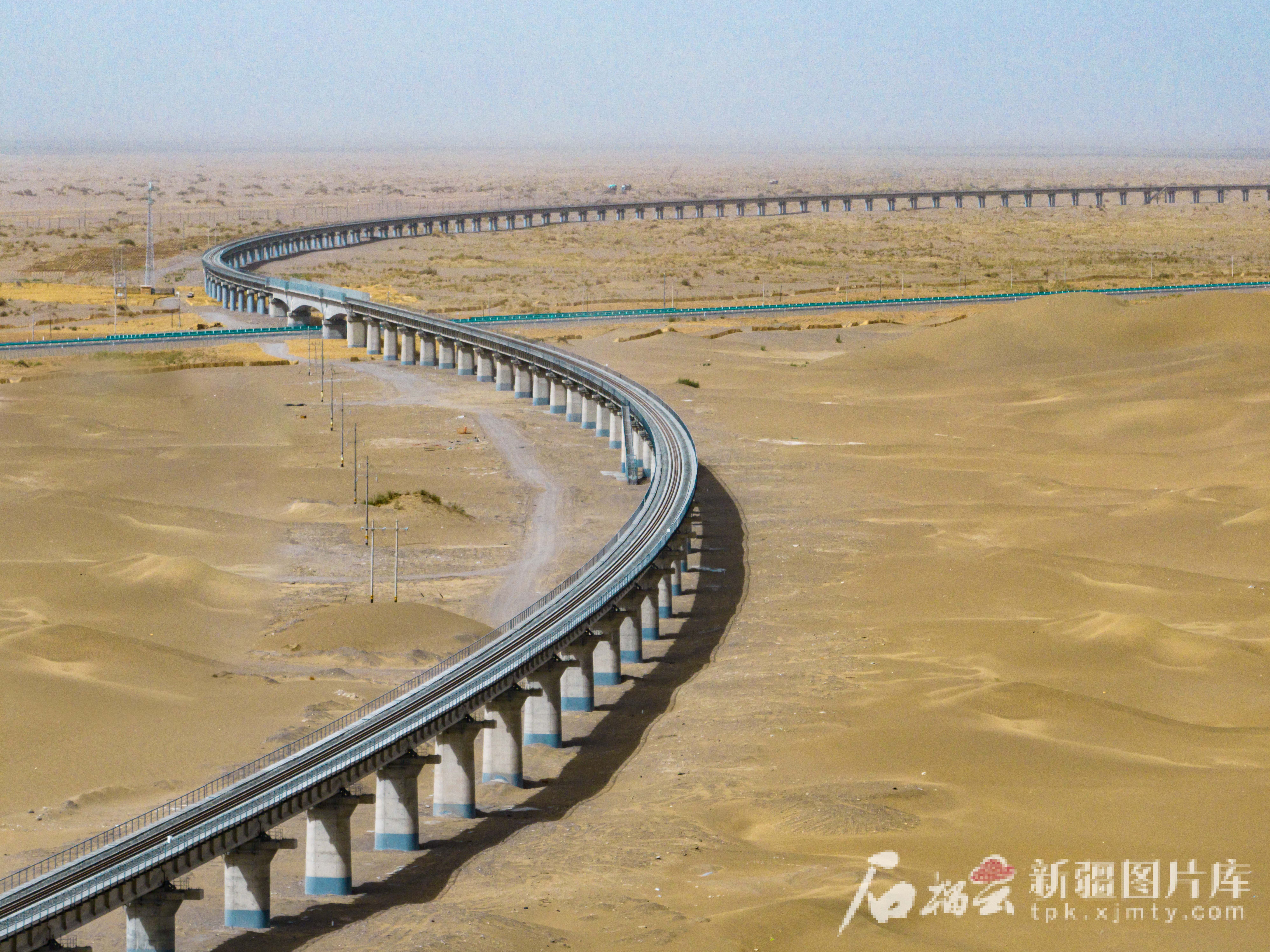 和若铁路民丰县(跨国道315线)若克雅特大桥。中国铁路通信信号上海工程局集团有限公司供图