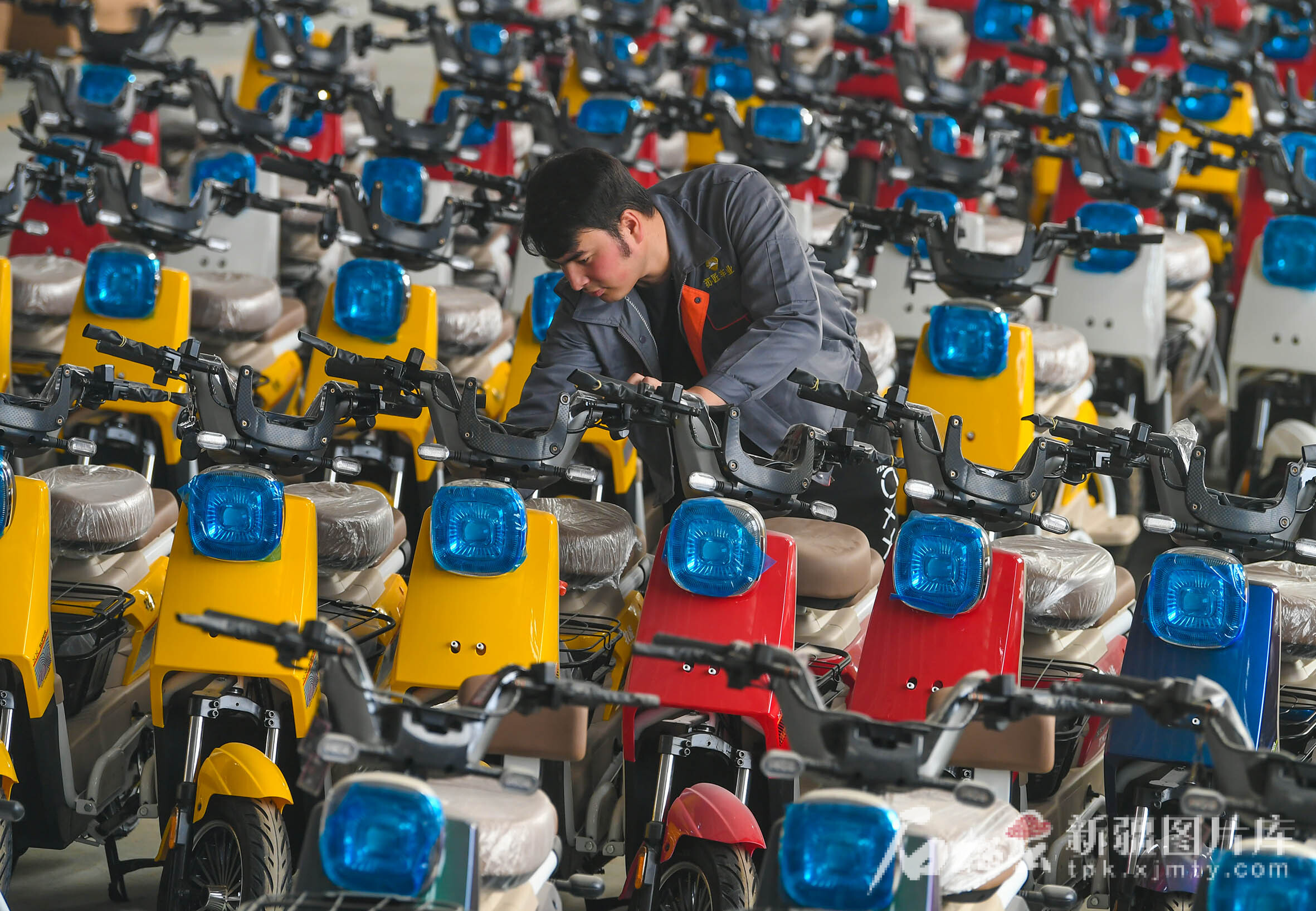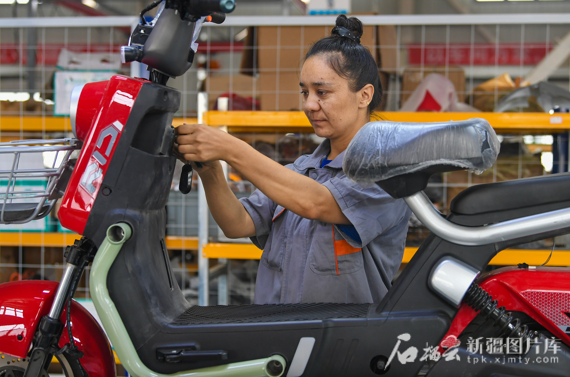 8月13日,工人在位于无锡产业园新疆苏匠车业有限公司车间安装电动车。