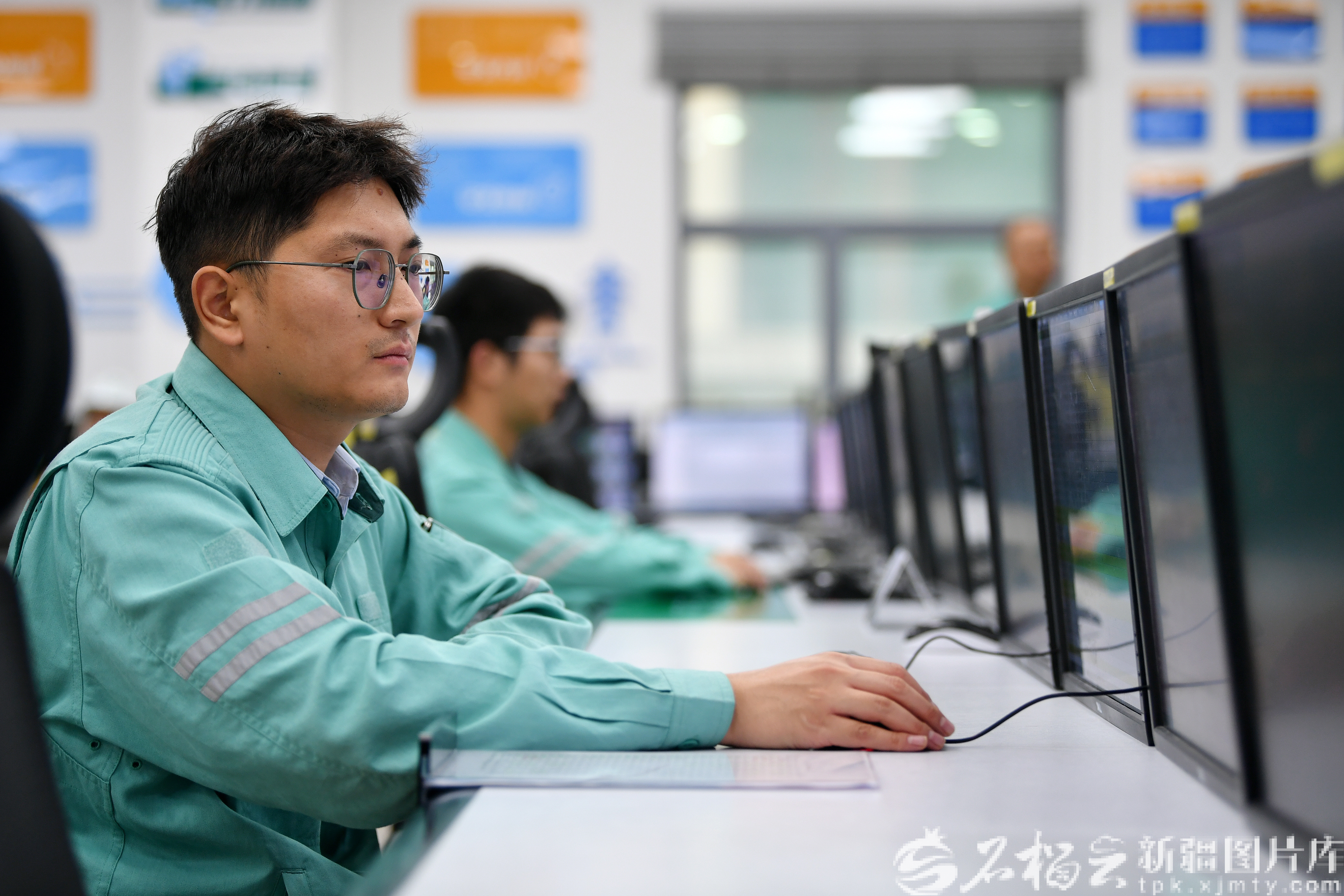 9月9日,工作人员在昌吉—古泉±1100千伏特高压直流输电工程昌吉换流站中控室查看设备运行情况。
