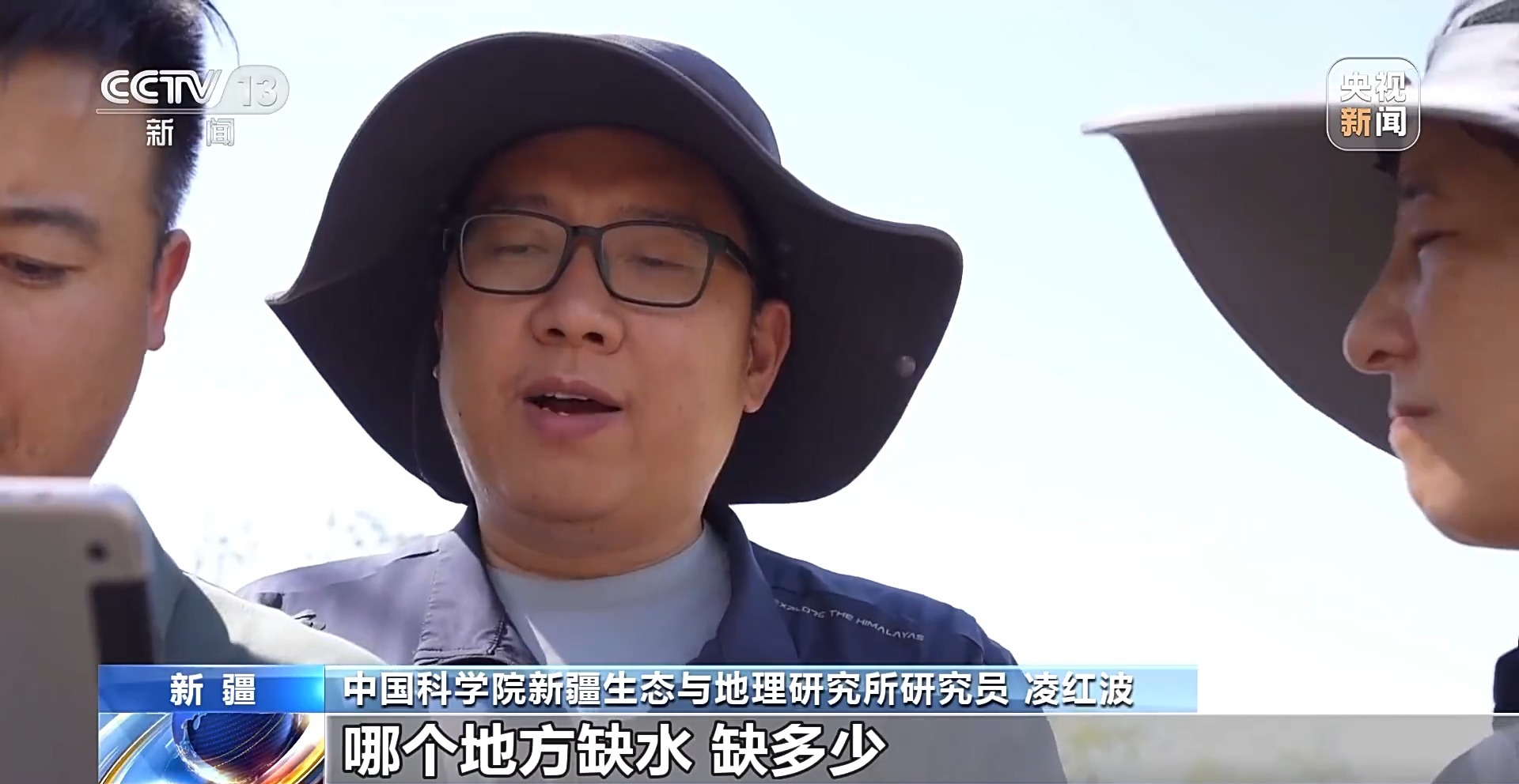 中国科学院新疆生态与地理研究所研究员 凌红波:现在我们是根据植物的需求去进行靶向性输水,哪个地方缺水,缺多少,什么时候开始去灌溉它,这样的一种精准的灌溉方式。