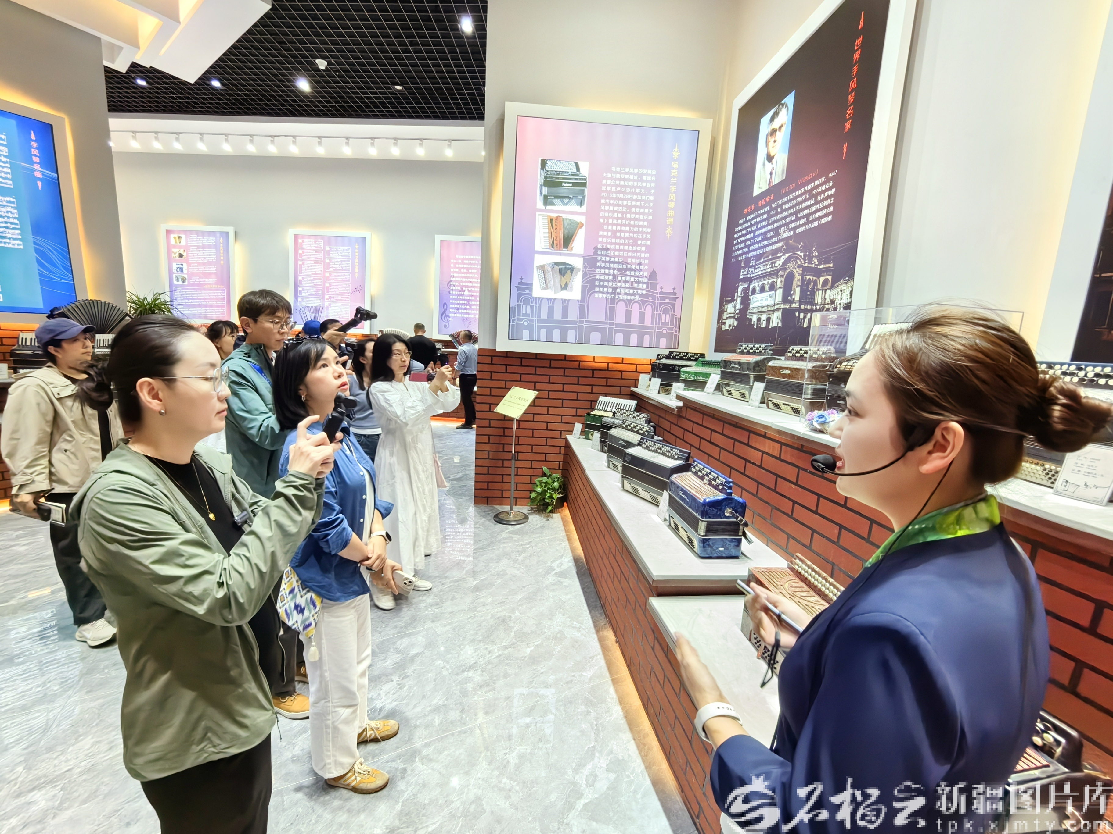 石榴云/新疆日报讯(记者 李雄心摄影报道)9月13日,“砥砺奋进七十载 天山南北谱华章”大型集中采访活动采访团一行走进塔城手风琴文化展馆,了解手风琴的演变历程。