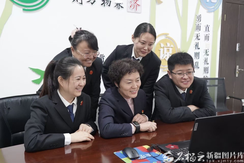 在沙湾市人民法院“顾海英工作室”,沙湾市人民法院特邀调解员顾海英跟同事们围坐屏幕前,认真观看庆祝大会直播。多年来,顾海英坚持法、理、情相结合,调解各类案件3000余件,调处成功率达85% ,2023年10月荣获“全国模范人民调解员”称号。“沿着习近平总书记指引的方向,完整准确全面贯彻新时代党的治疆方略,新疆的明天一定会更加美好。”她说。
