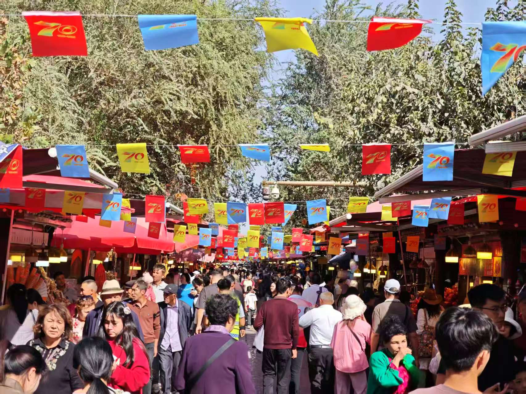 10月1日清晨,来自兰州的游客杨森在喀什古城欢快的开城仪式中,开启了新疆之旅。他走进百年老茶馆,就着烤包子品尝药茶,又去乐器店为孩子挑选手鼓,随后在汗巴扎的美食中流连忘返。“我们想在南北疆到处看看,如今的新疆,究竟美成什么样儿了。”杨森感慨,他已被喀什深深吸引,“这里既有厚重的历史,又有浓浓的烟火气,还融合了旅拍、酒吧等现代元素。我打算住上一周,慢慢感受。”