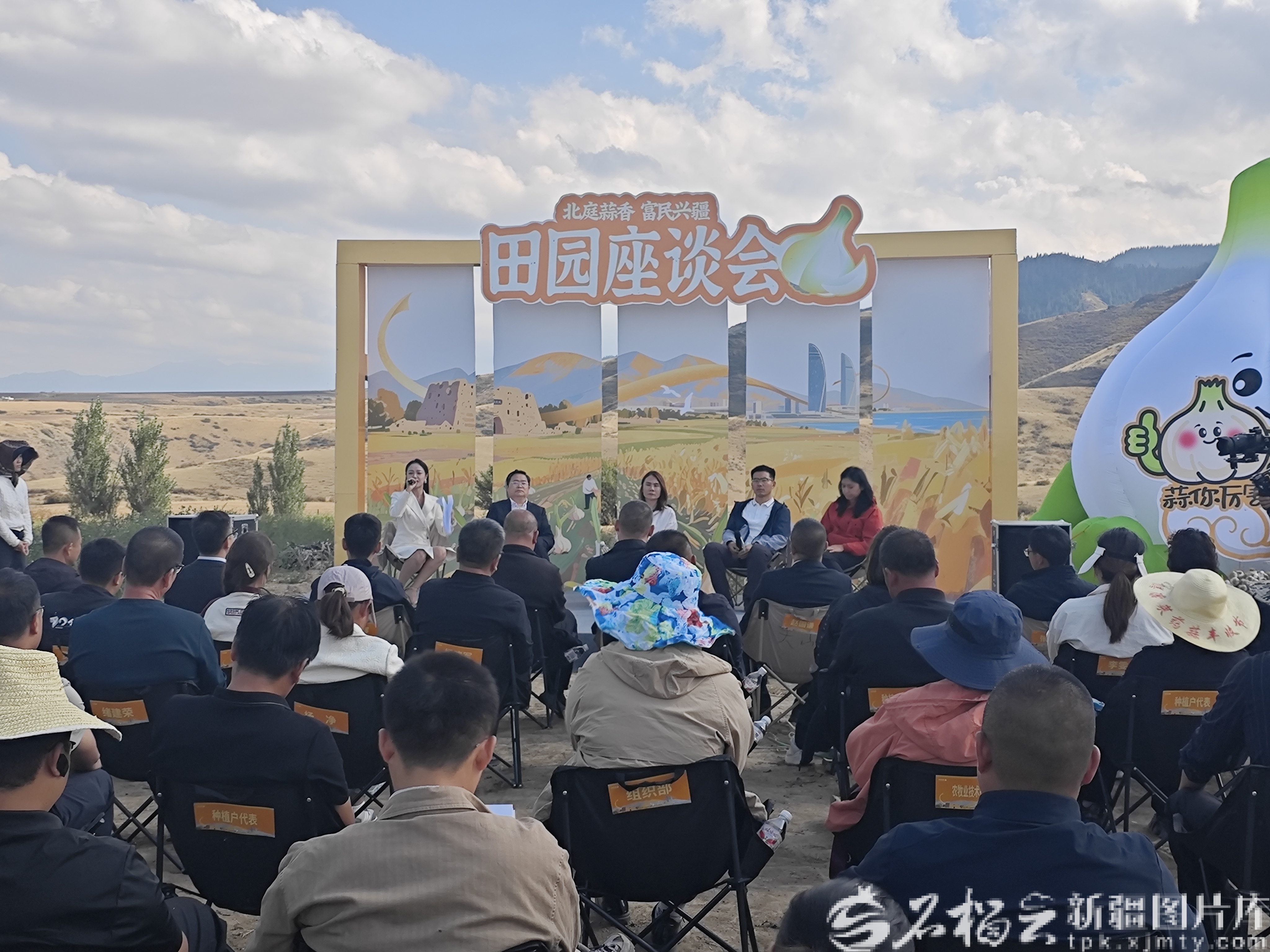 2025年吉木萨尔县大蒜文化科普活动期间,专家与新地乡蒜农交流大蒜种植技术。天山网-新疆日报 记者 宋海波摄