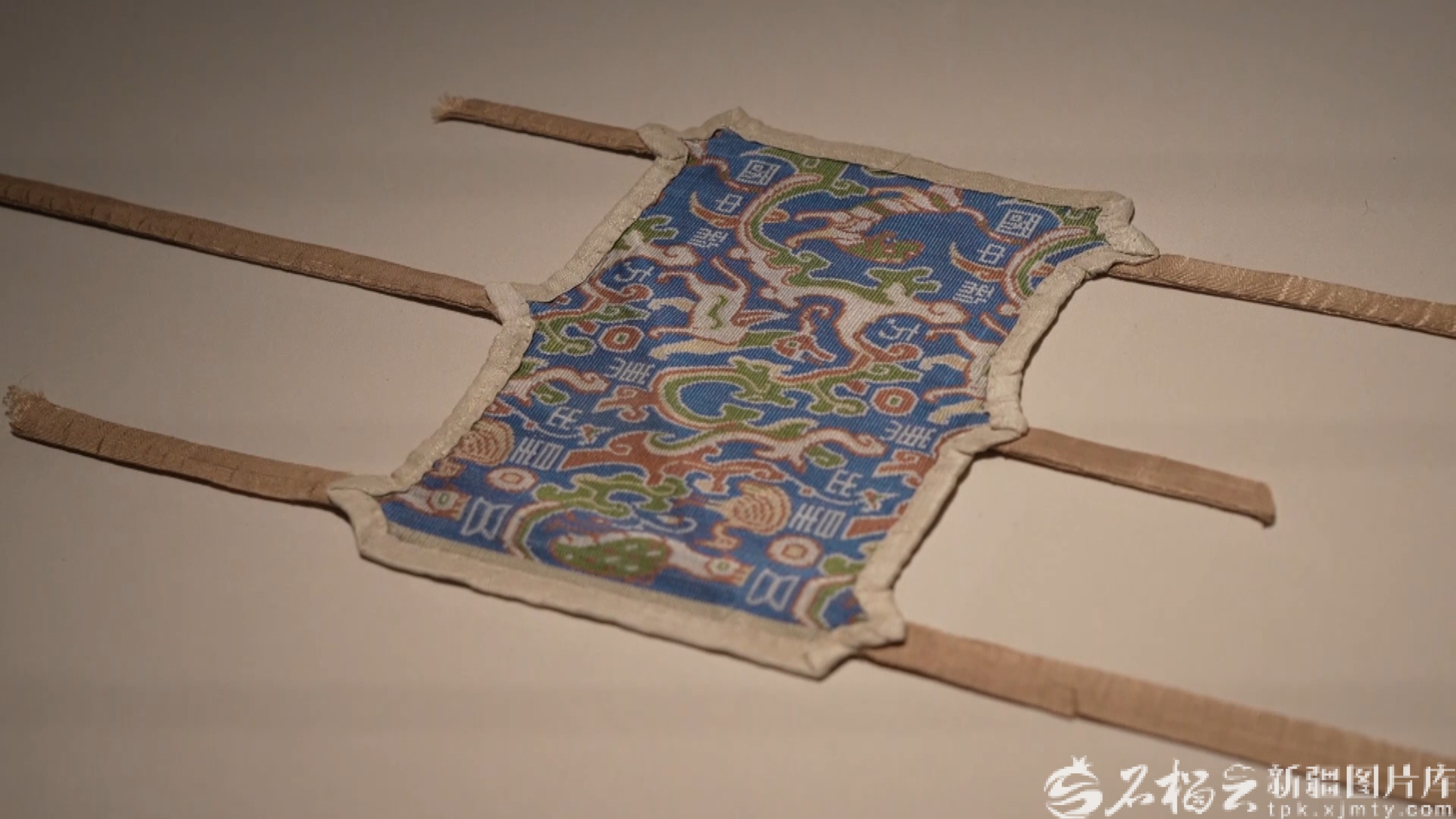 和田地区博物馆的“五星出东方利中国”锦护臂(原尺寸复制品)。天山网-新疆日报记者 拍热扎提·阿不都摄
