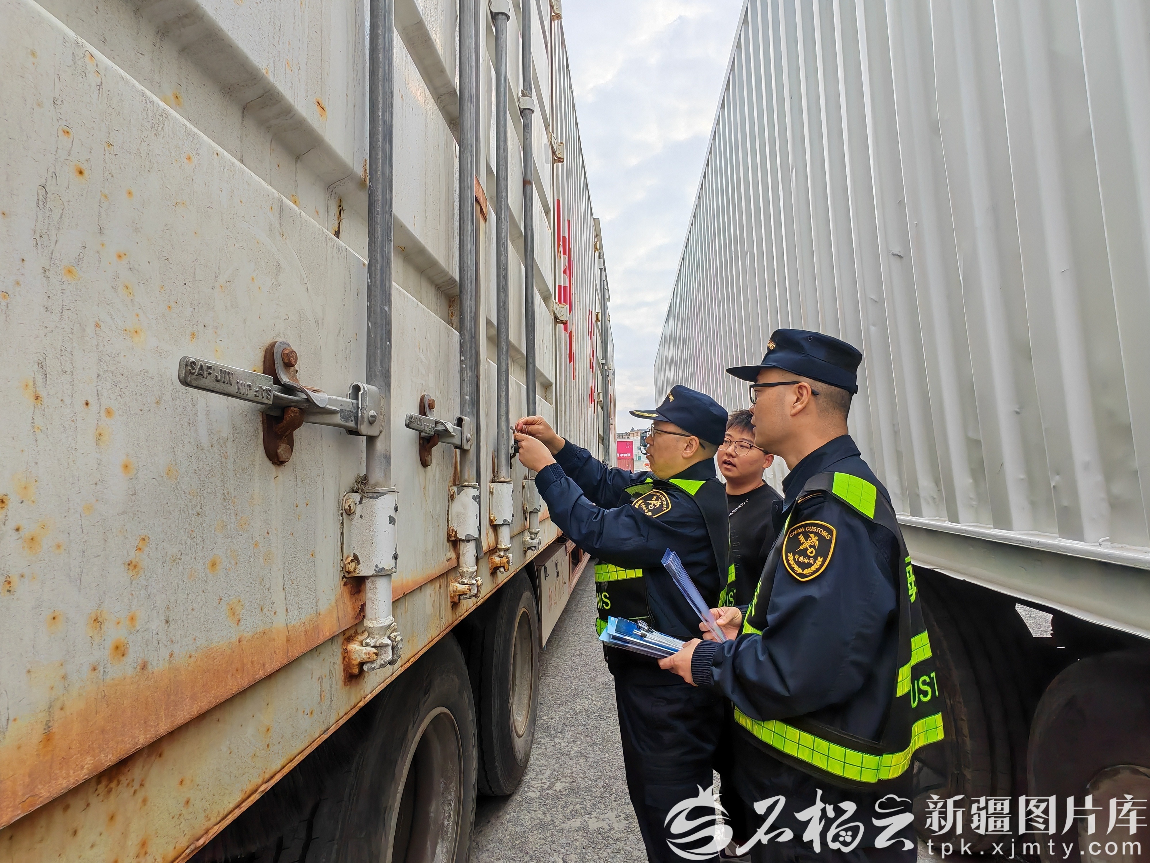10月20日,乌昌海关关员对车辆进行施封作业。张婷婷 摄