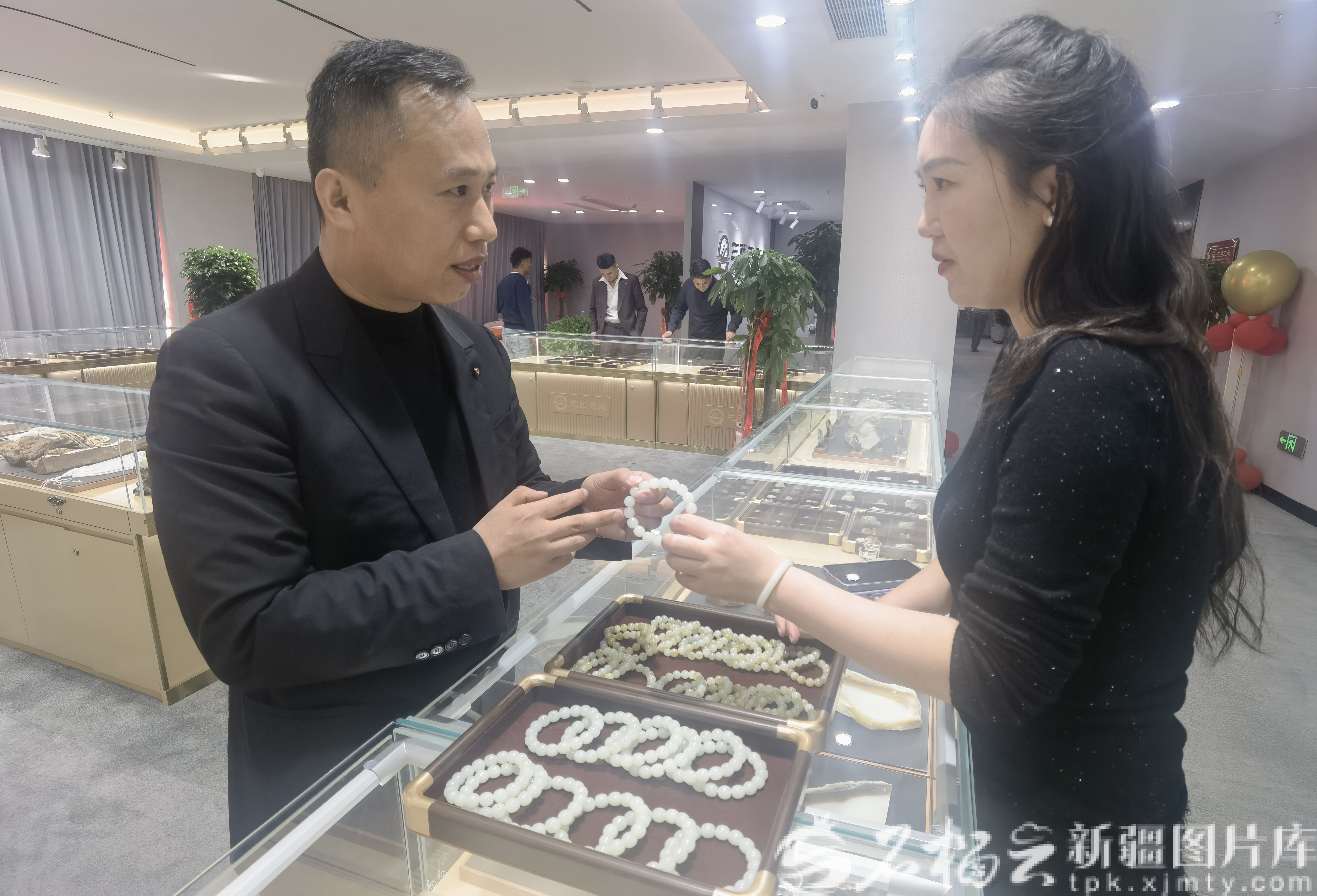“这串手链是我们且末的玉料加工的,放心,我店里只卖新疆玉。”10月27日上午,在且末县李三强玉业有限公司的门店里,负责人李三强对正在选购的游客说。