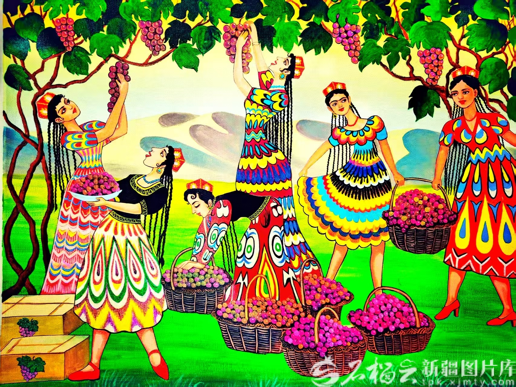 作品《葡园欢歌》。米那瓦尔·木台力甫供图