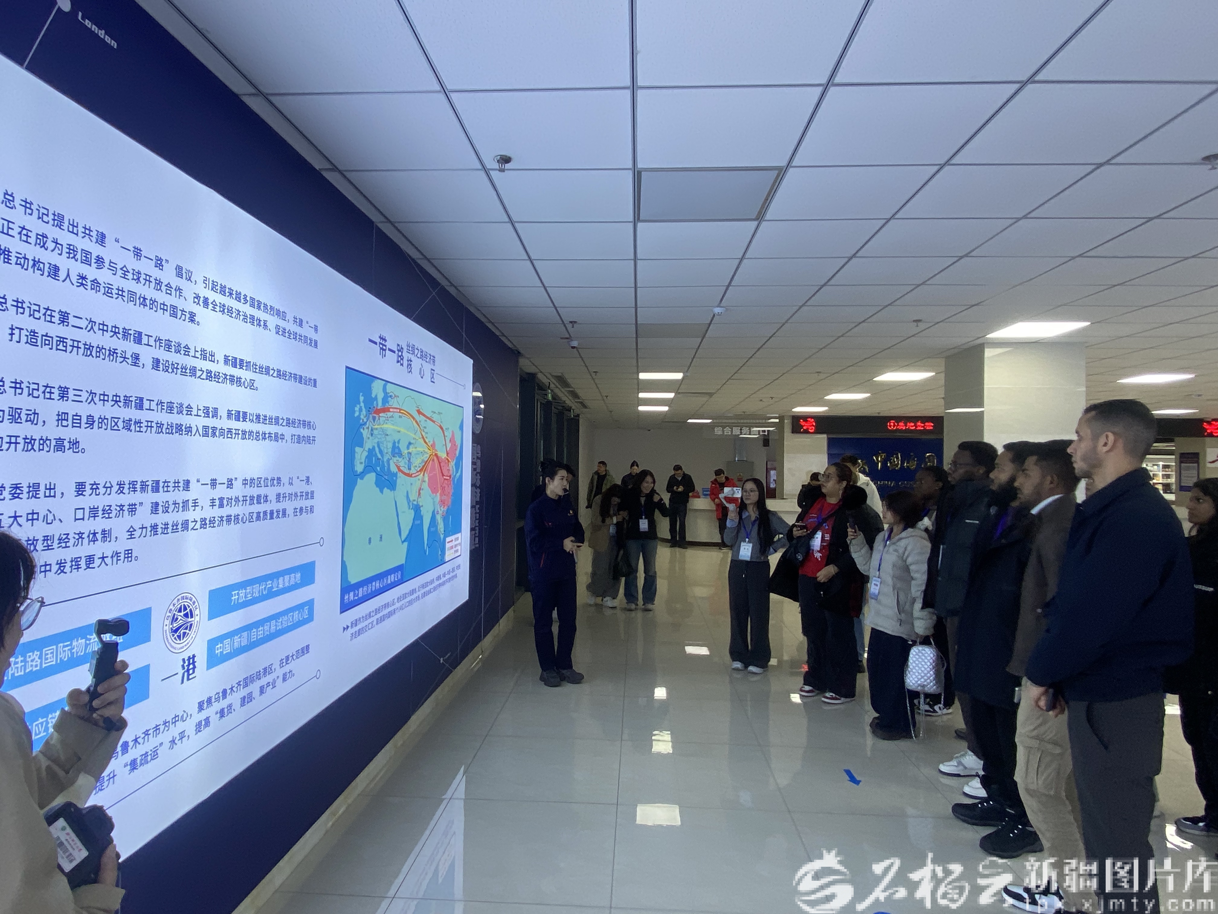 10月22日,留学生在乌鲁木齐国际陆港区研学参观。天山网-新疆日报记者 沈祖孝摄
