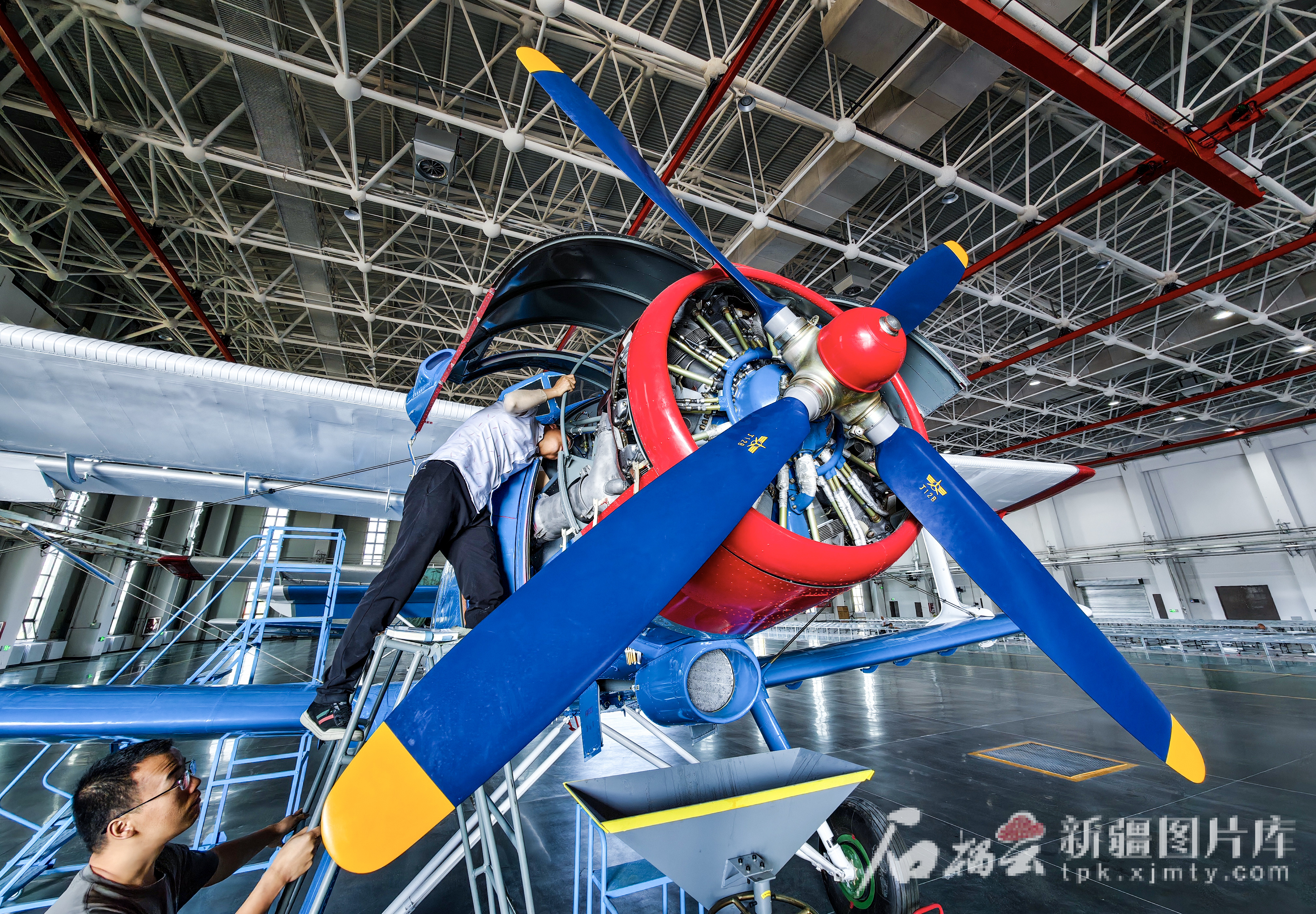 6月29日,在位于石河子经开区的天域航通大型无人运输机生产基地内,工作人员在安装无人机设备。(资料图)