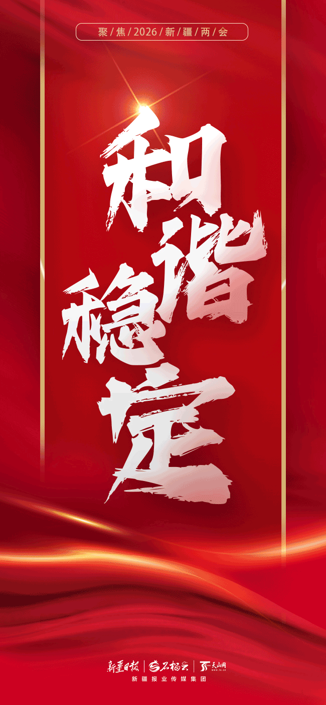 2025年是新疆发展历程中具有重要里程碑意义的一年。报告所提及的“和谐稳定”“中华民族共有精神家园”“现代化产业体系”等一系列热词,多维度展现了发展成果,哪一个热词让您感触最深?让我们通过一组海报,共同回顾这充满突破与进步的一年。