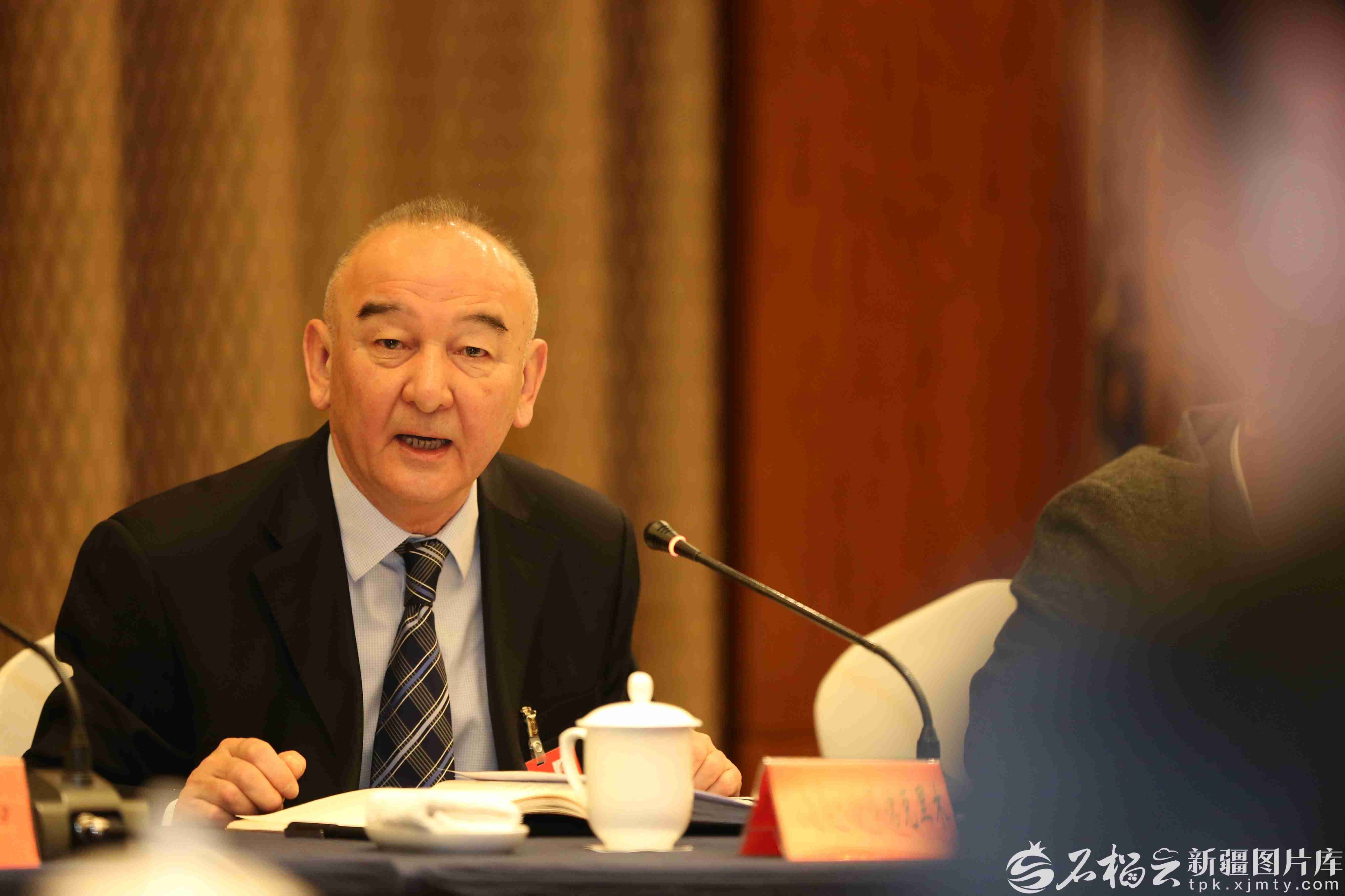 1月28日,哈尔肯·哈布德克里木代表在参加塔城地区代表团审议时,就强化生态环境执法检查与天山北坡经济带大气污染治理发言。天山网-新疆日报记者 蔡增乐摄
