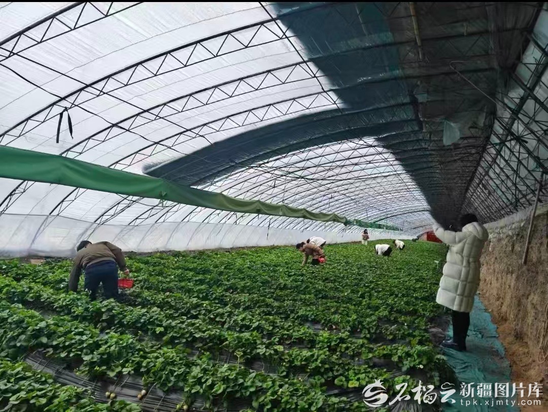 游客正在摘草莓。天山网-新疆日报记者 王新红摄