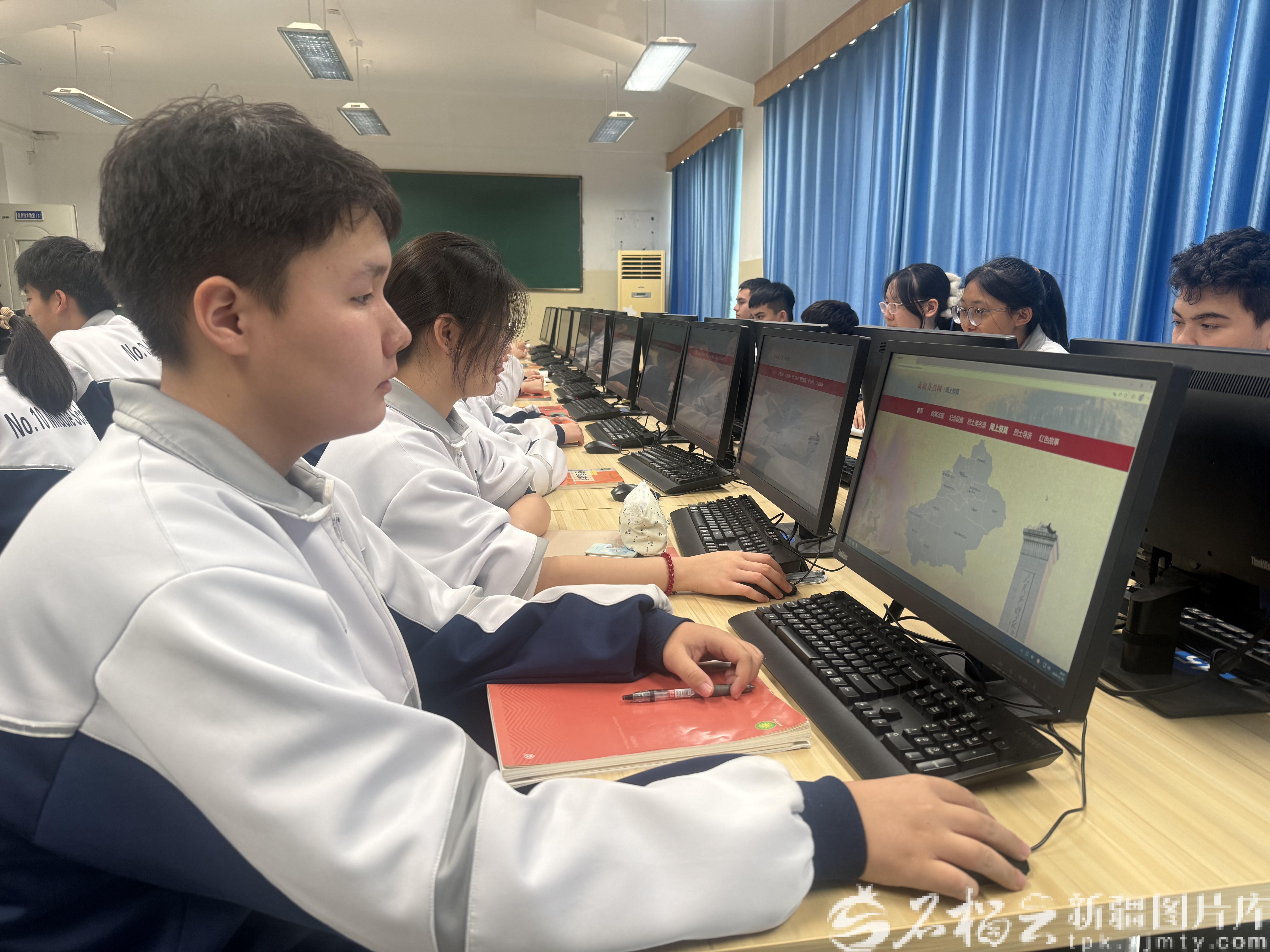 4月1日,温宿县第一小学学生观看英烈事迹视频。陈亚 摄
